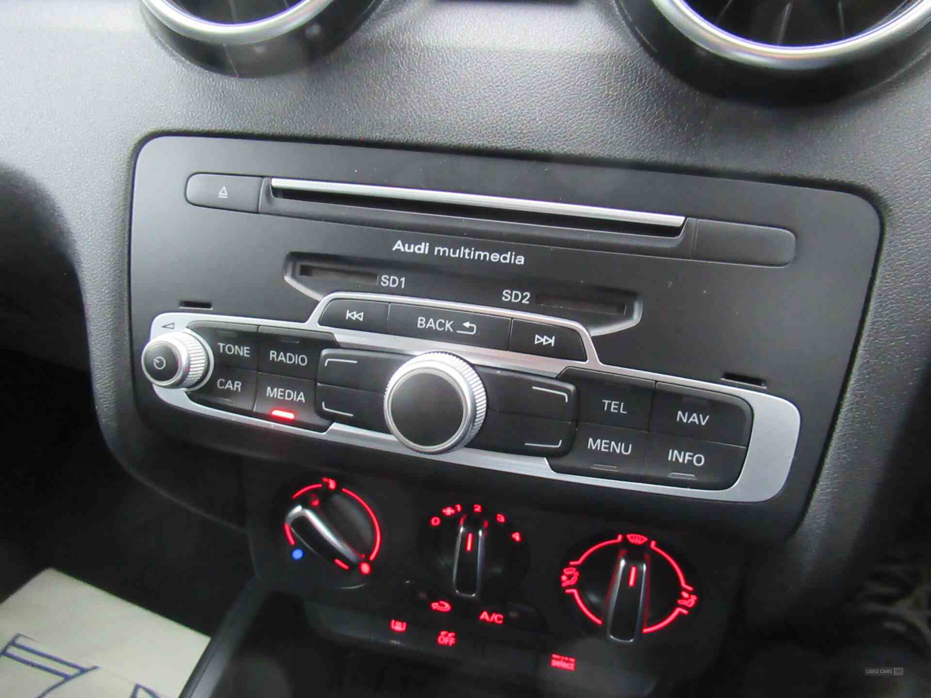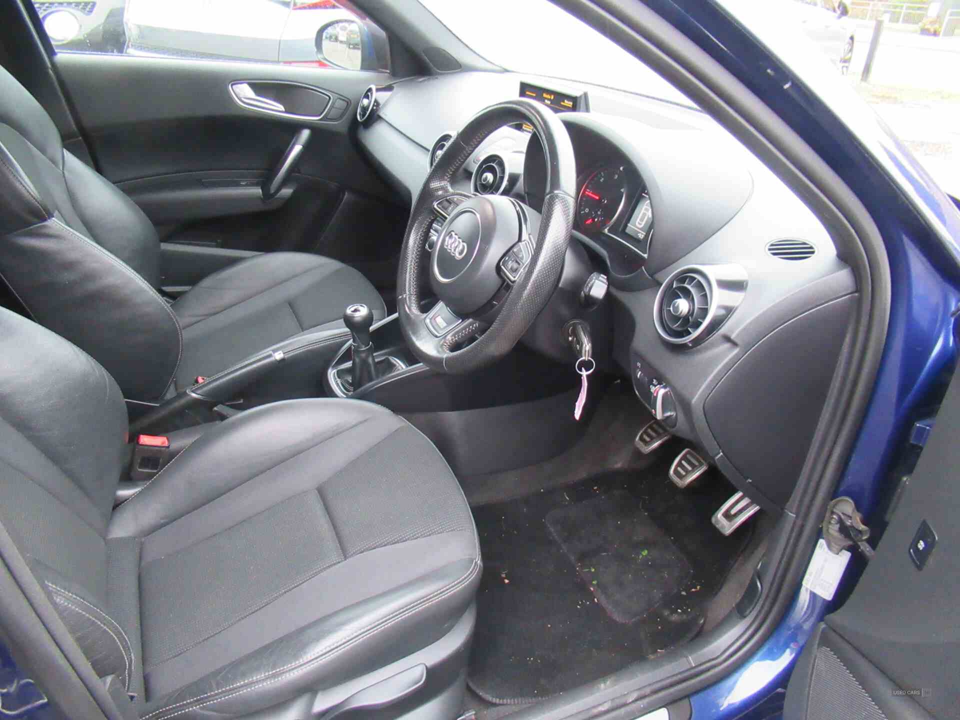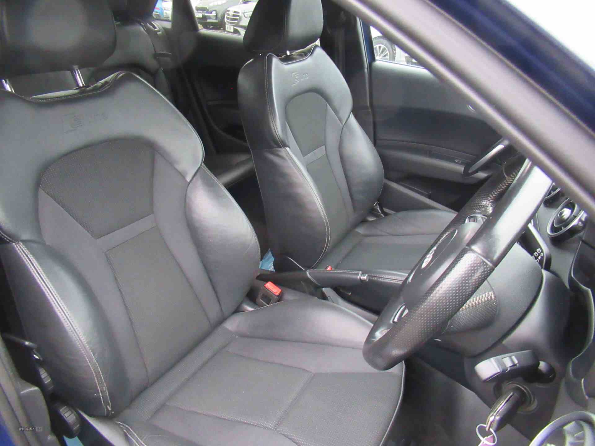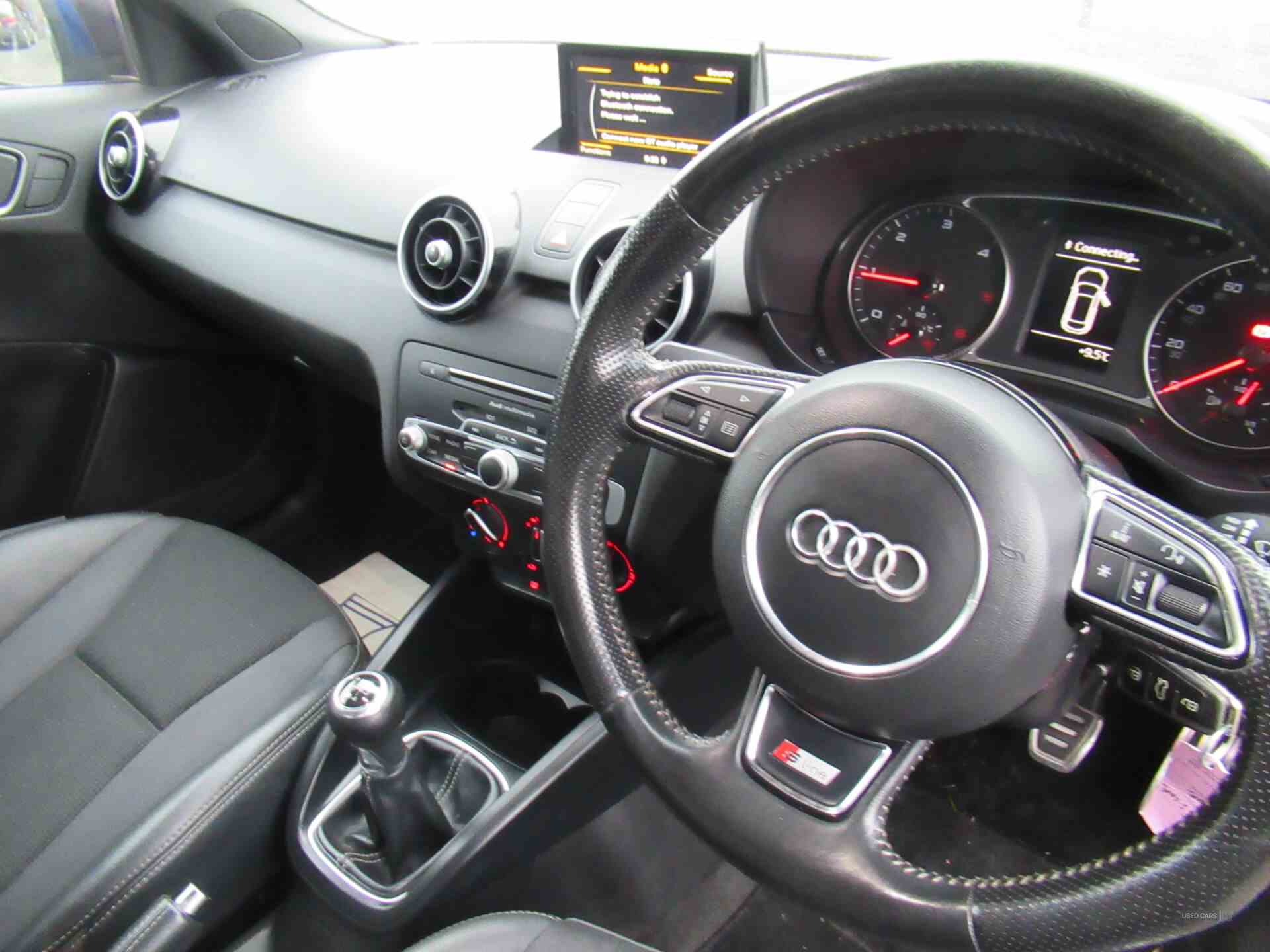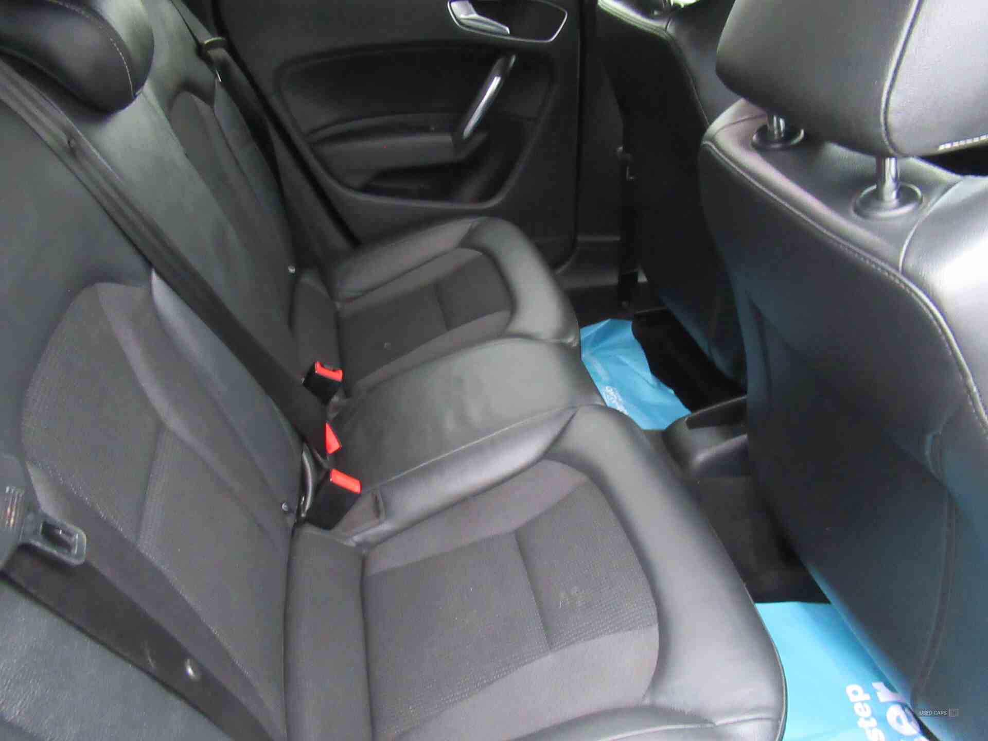 Audi drive select, Electro-mechanical PAS, Low washer fluid indicator, Service interval indicator, Voice control system, Additional SD card reader, Audi music interface, Bluetooth audio streaming, DAB Digital radio, Adaptive brake lights, Adaptive Xenon headlights plus with LED daytime running lights, dynamic range control and headlight washers, Body coloured bumpers, Electric adjustable door mirrors, Electric front windows, Electric rear windows, Front fog lights, Heat insulating glass, Heated door mirrors, Heated rear windscreen, LED rear lights, Rear diffuser, Rear wiper, Roof spoiler, S Line body styling, 12V socket in centre console, Adjustable rear head restraints, Black cloth headlining, Cupholders in centre console, Door sills with aluminium inlays, Front floor mats, Front head restraints, Height adjustable front seats, Illuminated glovebox, Isofix attachments on rear seats, Jack and tool kit, Leather handbrake, Lumbar adjustment for front seats, Rake/reach adjustable steering wheel, Split folding rear seats, ABS/EBD, Brake assist function, Driver and passenger side airbags, Driver/Front Passenger airbags, EDL, ESP with ASR, First aid kit, Front and rear seatbelt reminder, Front passenger airbag deactivation, Head airbags, Height adjustable front seatbelts, Tyre pressure monitor, Warning triangle, Locking wheel bolts, Remote control central locking, Thatcham category 1 alarm + immobiliser, Tyre repair kit