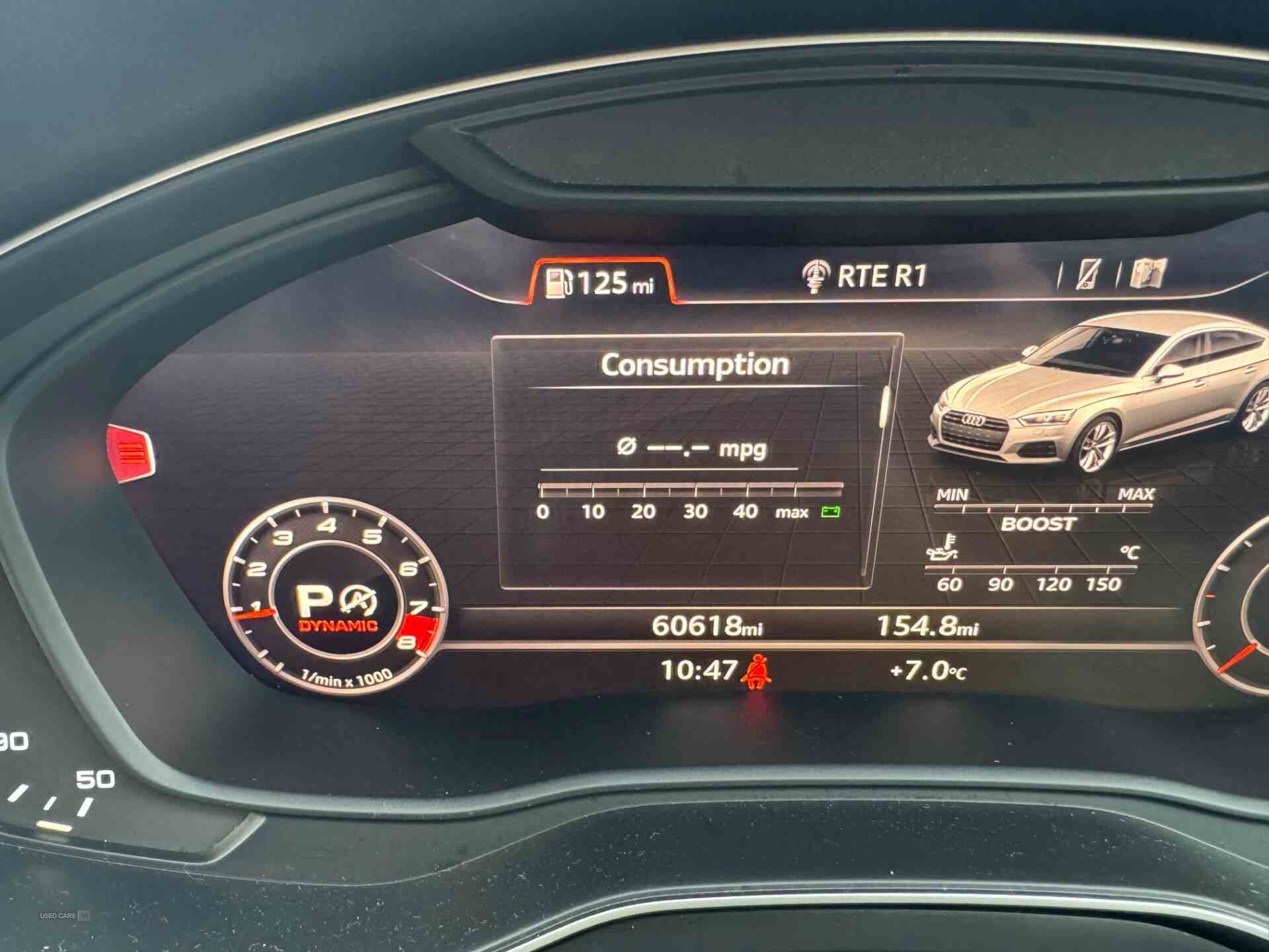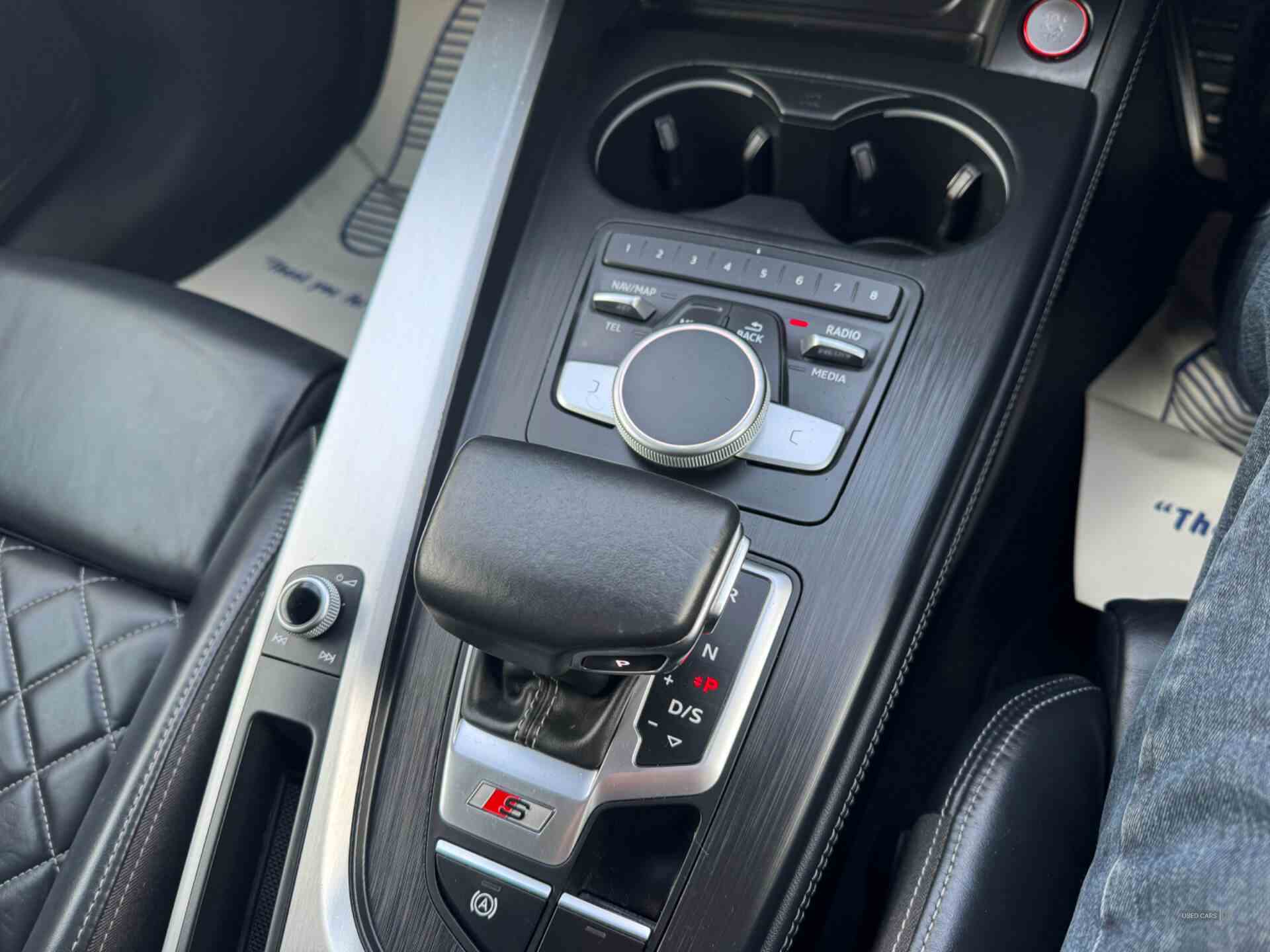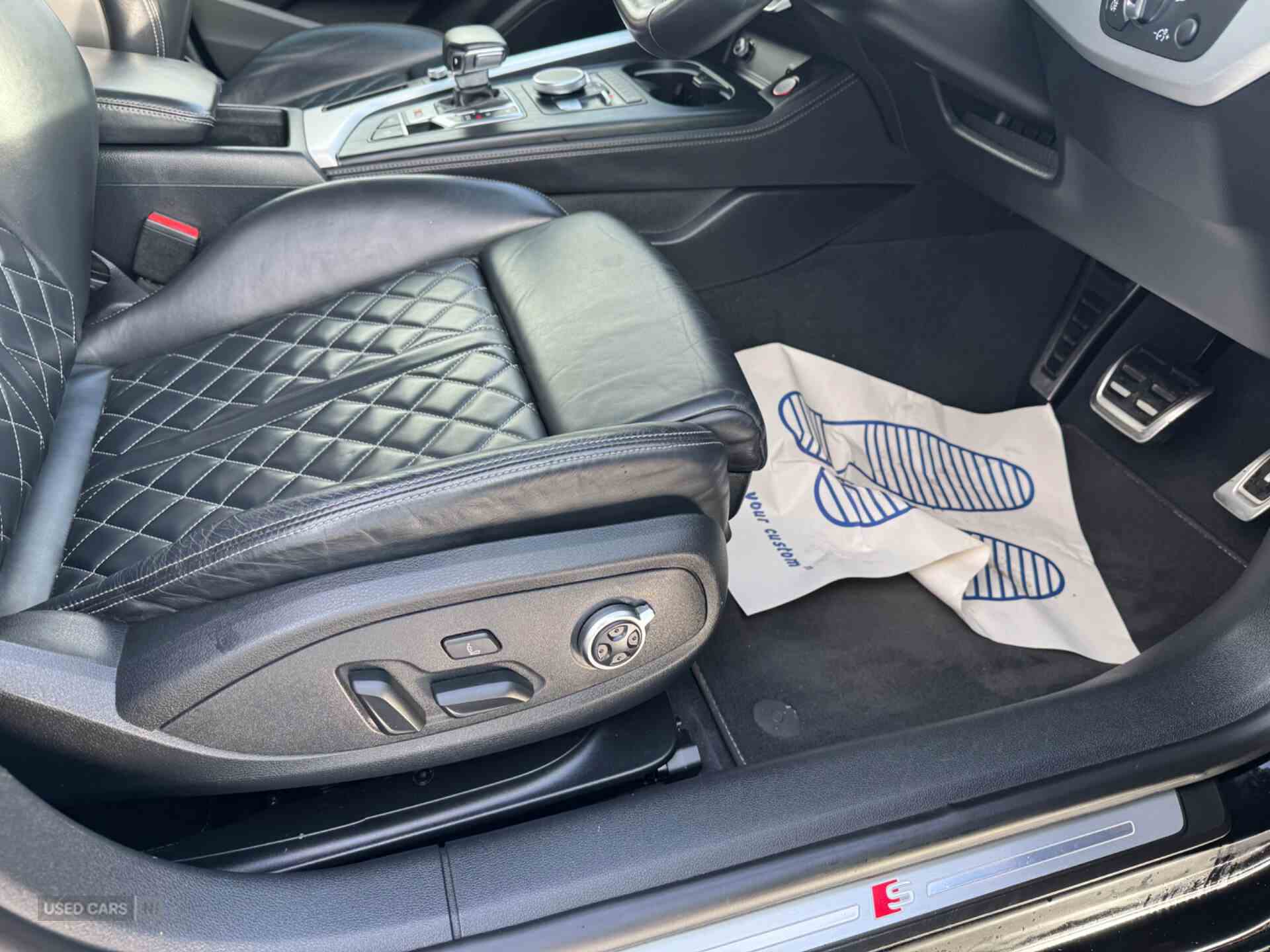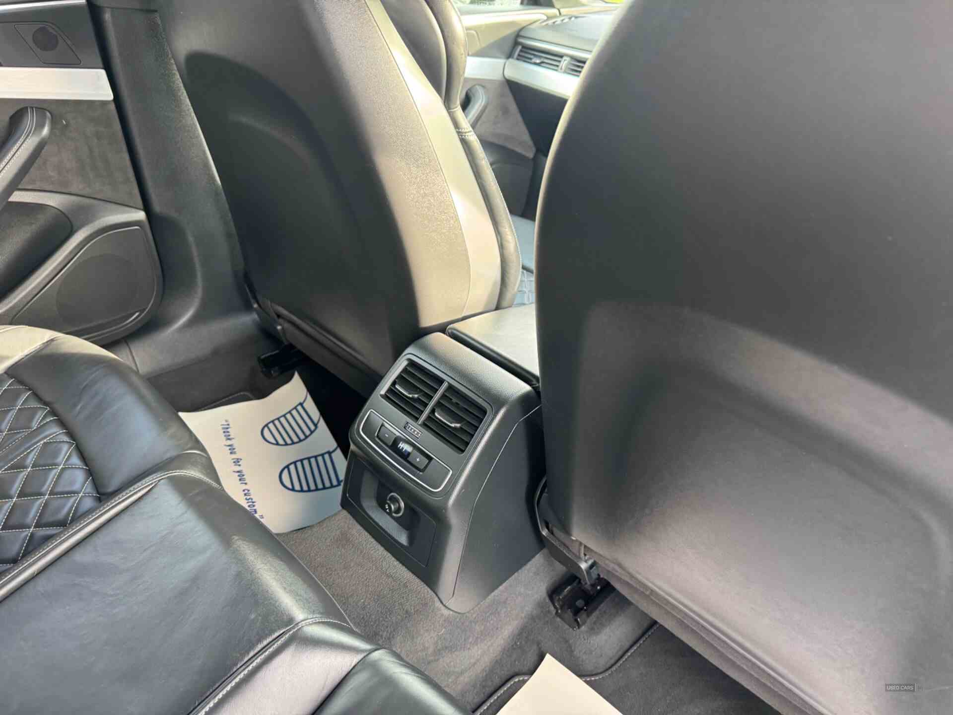 Audi drive select, Audi parking system plus with front and rear sensors, Audi smartphone interface, Colour driver's information system display, Electric tailgate release, Electro-mechanical PAS, MMI navigation plus with MMI touch, Mobile telephone preparation - bluetooth interface, Service interval indicator, Voice control system, CD player, DAB Digital radio, MMI radio plus with 7" colour MMI screen and MMI controller, Two SDXC card slots, Air inlets in titanium black, Aluminium door mirror housings, Auto dimming rear view mirror with acoustic windscreen, Body colour bumpers, Body colour rear spoiler, Chrome door handles, Electric adjustable heated door mirrors, Electric front windows, Front fog lights, Headlight washers, Heat insulated glass, High beam assistant, Rain and light sensors, S body styling, Twilight grey matt radiator grille in aluminium silver matt inlay, Twilight grey matt rear diffuser, Twin chrome exhaust tailpipes x2, 'S' instrument dials, 2 x USB charging port with aux input socket, 3 seat rear bench, Adjustable steering column, Automatic tri-zone climate control, Black headlining, Centre console with cupholders, Electric lumbar support, Fine Nappa leather upholstery, Front centre armrest, Front head restraints, Front/rear floor mats, Illuminated door sills, Isofix front passenger and rear seat preparation, Jack and tool kit, Massage function for front seats, Rear headrests, Split folding rear seat, Stainless steel pedals and foot rest, Super sports seats, Top tether anchor plate for isofix child seat, Extended interior upholstery pack - A5/RS5, Non Smokers pack, 3x3 point rear seatbelts, ABS, ASR, Driver/Front Passenger airbags, Electromechanical parking brake, Enhanced braking system, ESP + traction control, First aid kit, Front and rear curtain airbags, Front passenger airbag deactivation, Front side airbags, Height adjustable front seatbelts, Hill hold function, Multi-Collision braking, Pre-sense city emergency braking system, Seatbelt warning, Tyre pressure monitor, Warning triangle, Anti theft system, Immobiliser, Keyless Start, Locking wheel bolts, Remote central locking, Thatcham category 1 alarm, 19" 5 spoke cavo design alloy wheels in part polished/contrast grey finish, Space saver spare wheel