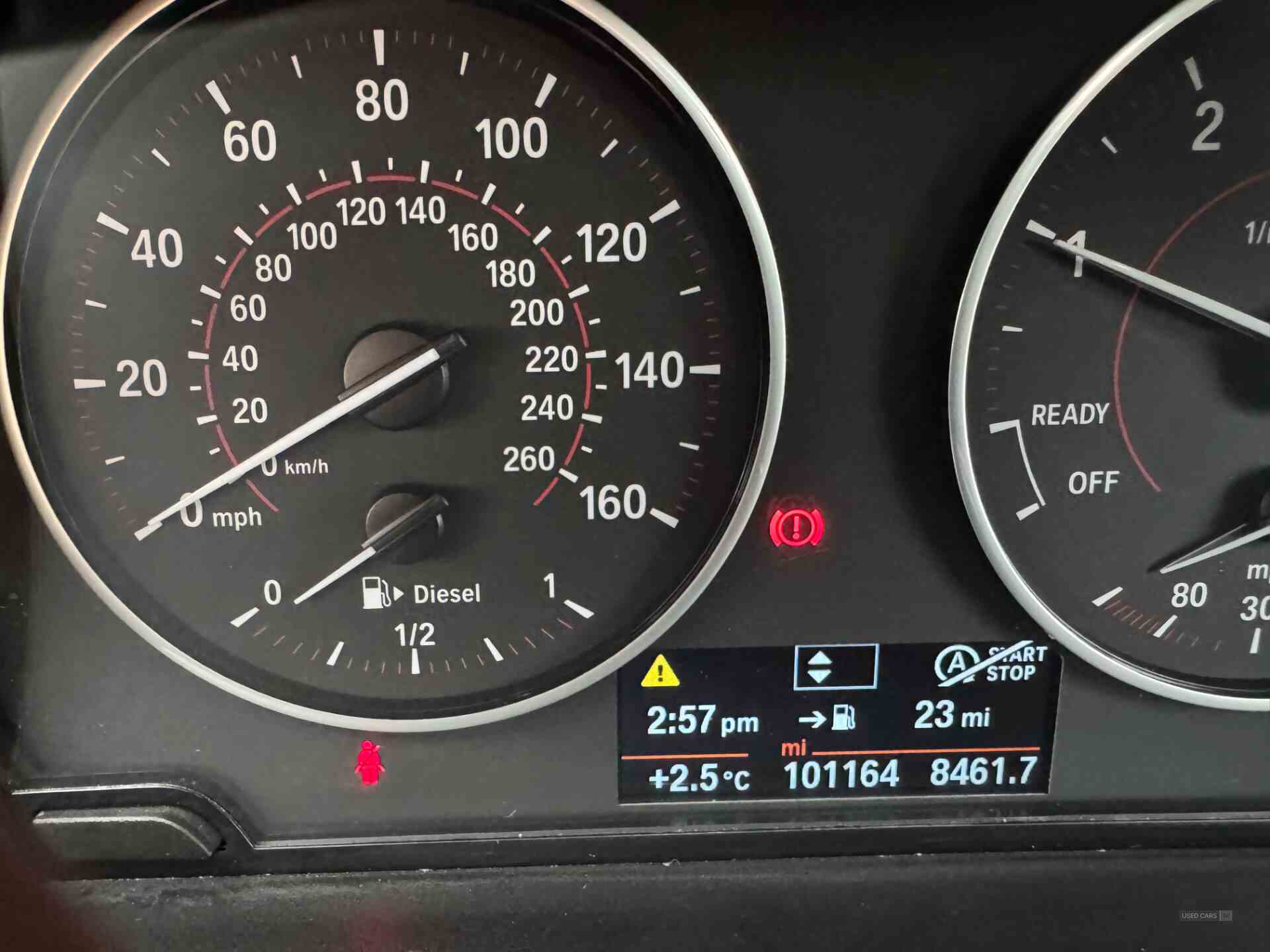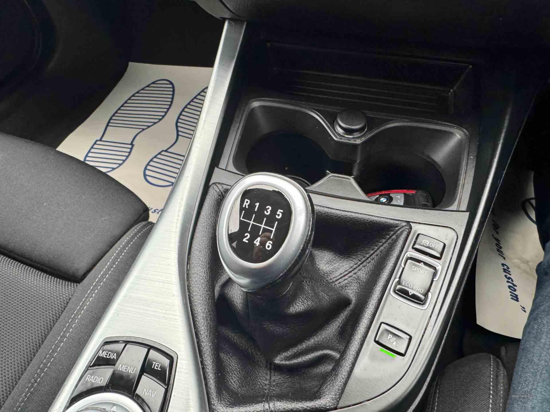 'Lights On' warning buzzer, BMW emergency call, BMW Online services, BMW Teleservices, Brake force display, Engine start/stop button, Oil level indicator, On board computer, On board diagnostics, Outside temperature display, Service interval indicator, Speed limiter, Auxiliary point for auxiliary devices, BMW professional radio with CD player, DAB Digital radio, Body colour bumpers, Body colour door handles, Dark chrome exhaust tailpipe, Daytime running lights, Electric front windows + one touch + anti-pinch, Electric rear windows, Electrically adjustable door mirrors, Follow me home headlights, Green tinted heat insulating glass, Heated door mirrors, Heated windscreen washer jets, High gloss black kidney grille, Rain sensor including auto headlights activation, Rear wash/wipe, 12V power socket in centre console, 12V power socket in passenger footwell, 4 grab handles, 60/40 split rear seats, Anthracite Velour floor mats, Door armrests, Folding rear seat head rests, Front door sill finishers in Sport designation, Front folding/sliding centre armrest with storage, Front head restraints, Front sports seats with electric side bolster adjustment, Front/rear courtesy lights with soft on/off dimming, Glovebox, Isofix rear child seat preparation, Leather gear knob and handbrake grip, Load restraint lashing eyes, Multifunction steering wheel with audio controls, Reach + rake adjustable steering column, Storage compartments in doors, Welcome lighting, ABS/EBD, Automatic Stability Control (ASC), CBC - (Cornering brake control), Child locks on rear doors, Crash sensor, Driver/Passenger airbags (Impact dependent), Drivers knee airbag, DSC+, Dynamic brake control, Dynamic Traction Control - DTC, Front passenger airbag deactivation, Front side airbags, Hill start assist, ITS head airbags for front/rear, Pyrotechnically pre-tensioned front seatbelts, Seat belt force limiter, Three 3 point rear seatbelts, Tyre pressure monitor, Warning triangle and first aid kit, Automatic drive away locking facility, Electronic immobiliser, Remote central locking, Thatcham Cat.1 alarm, Diesel particulate filter, Drive Performance Control, Run flat tyres