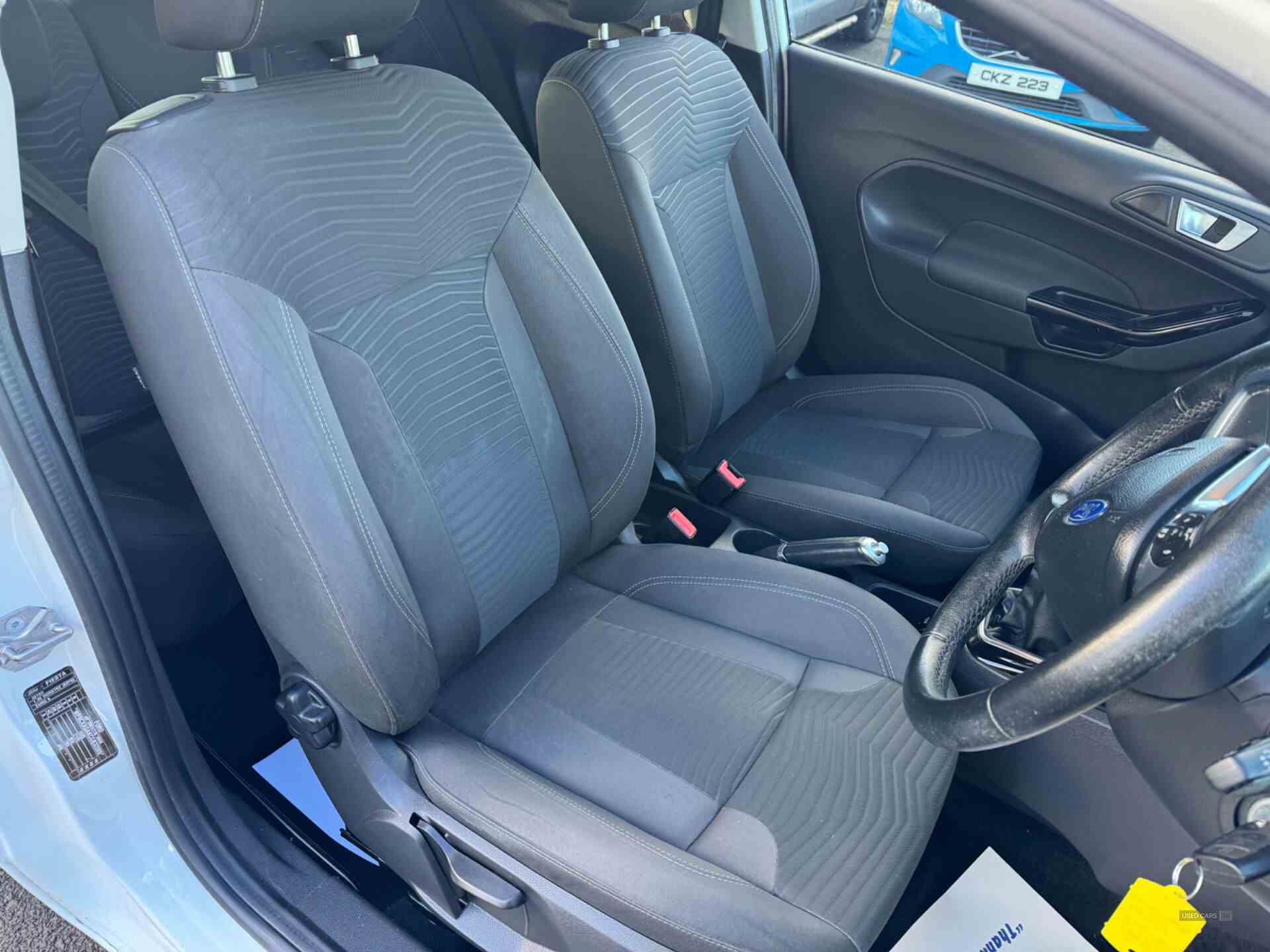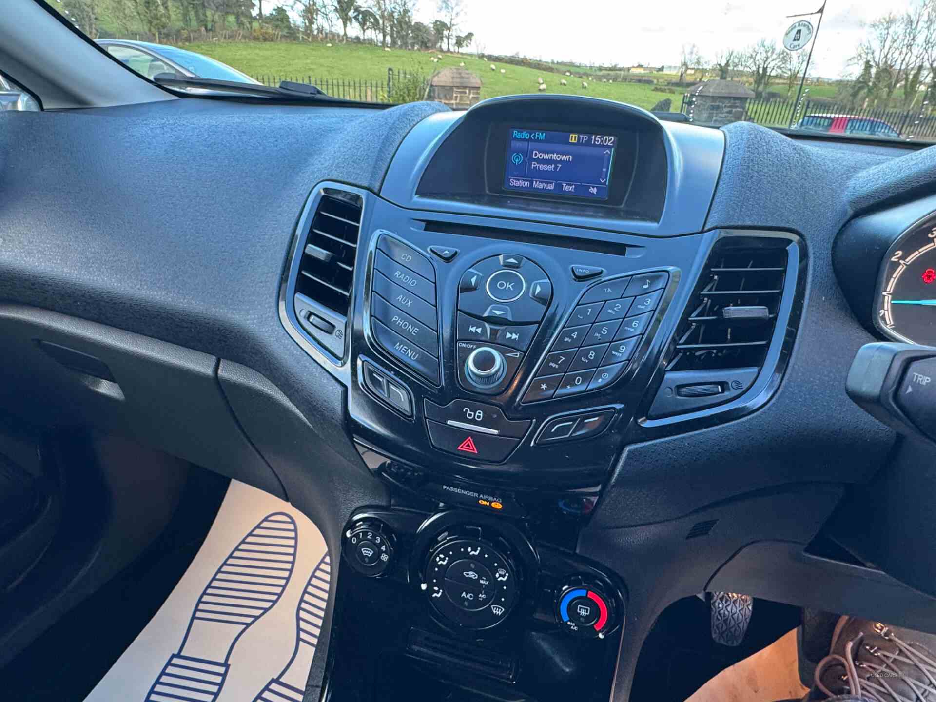 Electric power steering, SYNC Emergency Assistance, Trip computer, 6 speakers, Auxiliary input socket, DAB radio/CD and Ford SYNC Bluetooth connection with voice control, Steering wheel mounted controls, USB connection, Body colour door handles, Body colour electric adjustable heated door mirrors, Body colour tailgate handle, Chrome beltline, Chrome surround for front fog lights, Courtesy headlamp delay, Electric front windows/one touch facility, Front fog lights, LED daytime running lights, Quickclear heated windscreen, Rear wiper, Tinted glass, Upper front grille chrome surround, 3 spoke leather steering wheel, 60/40 split folding rear seat, Adjustable head restraints, Ambient lighting, Boot carpet, Cloth upholstery, Footwell illumination, Front map reading lights, Front seatback pockets, Illuminated glovebox, Leather trimmed handbrake handle, Load area light, Manual air conditioning, Manual seat adjustment, Pollen filter, Rake/reach adjustable steering wheel, 3 point rear seatbelts x3, ABS+EBA, Curtain airbags, Driver and passenger airbags, Drivers knee airbag, ESP + traction control, Front passenger airbag deactivation, Front side airbags, Hill start assist, MyKey system, Tyre pressure monitoring system, Immobiliser, Remote central locking