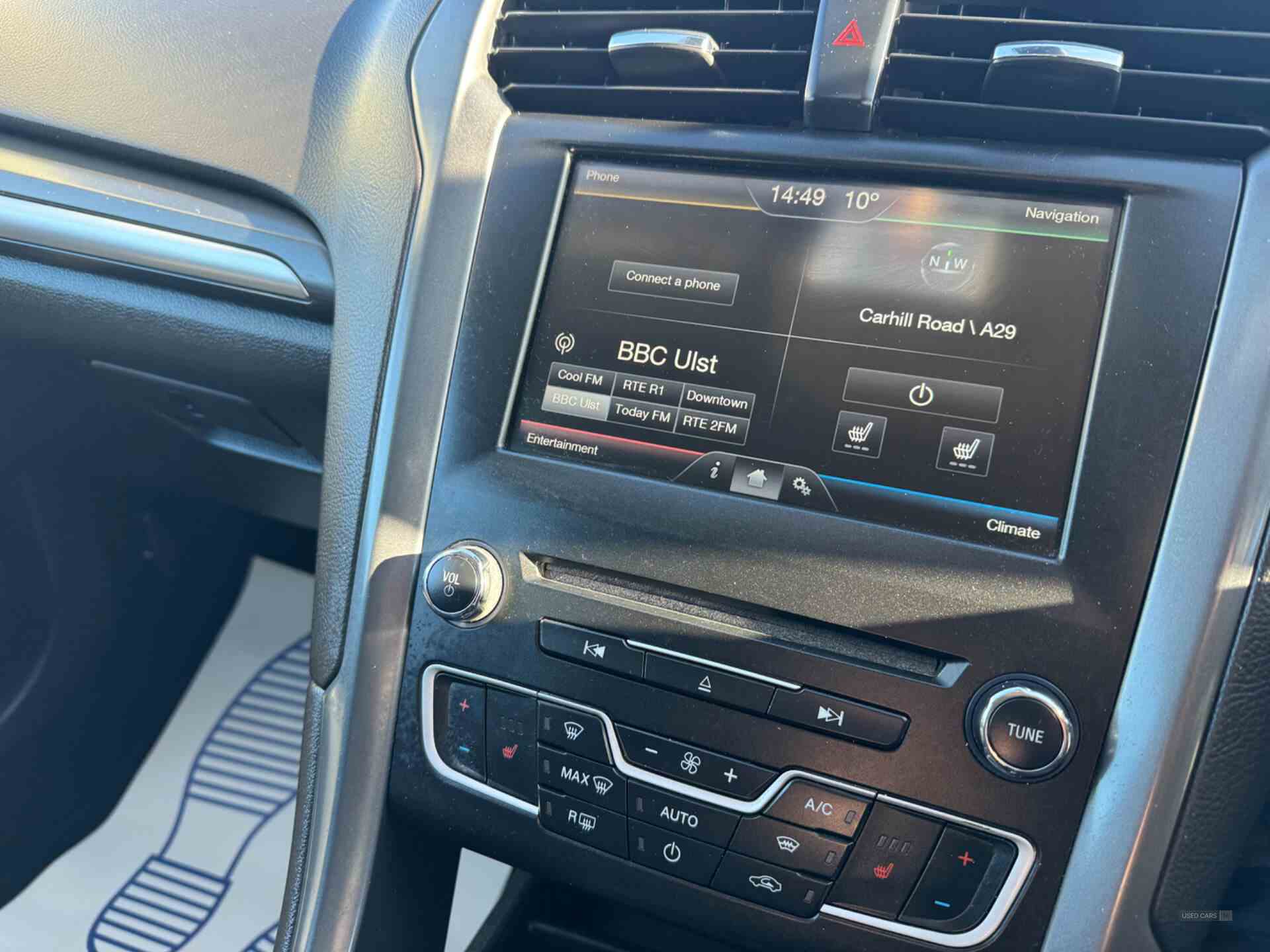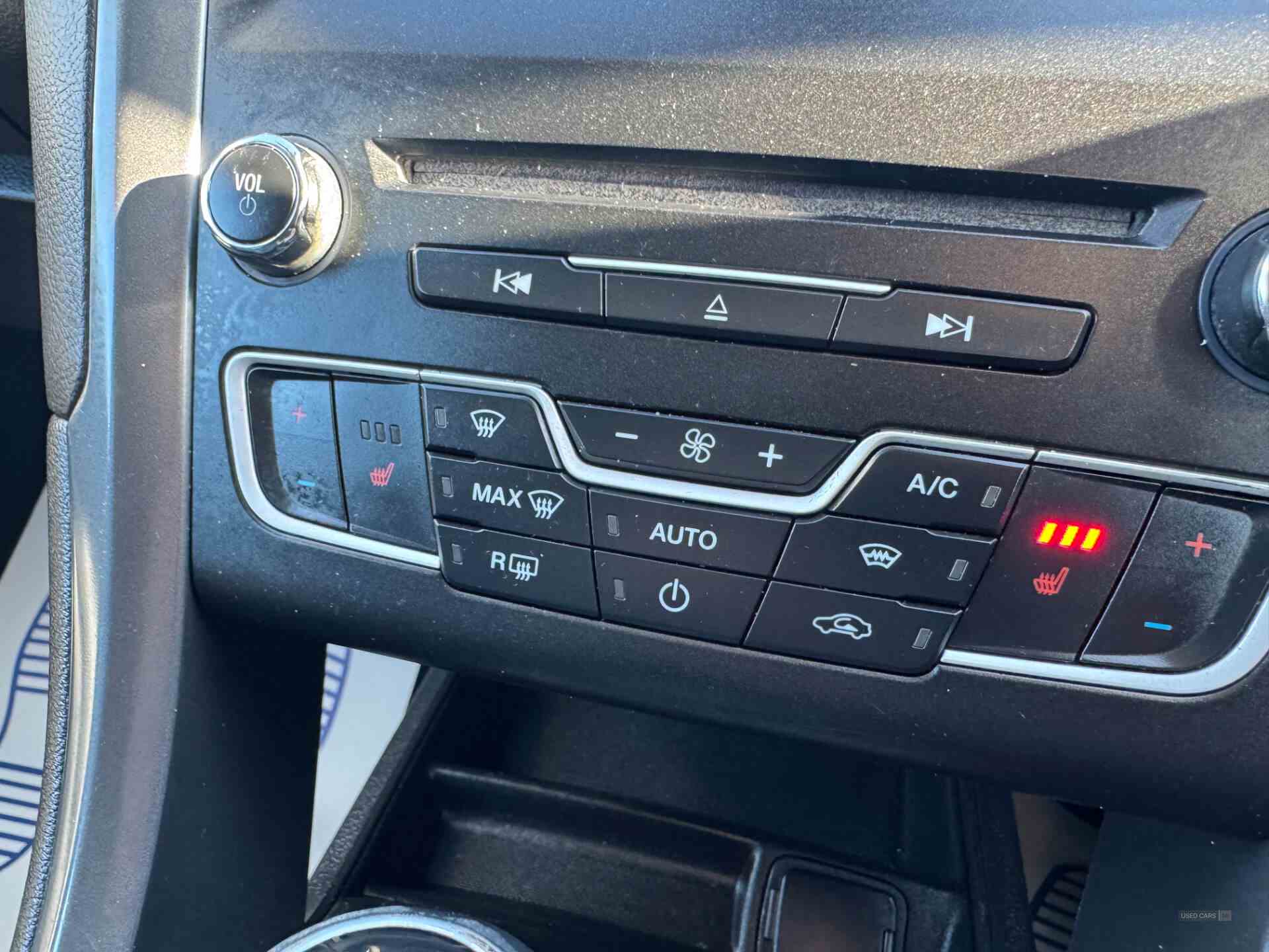 'Ford Power' starter button, Bluetooth connectivity with voice control, Easy fuel capless refuelling system, Ford SYNC 3 with 8" colour touch screen, Front and rear parking sensors, Lane keep assist, PAS, SYNC Emergency Assistance, TFT cluster screen, Traffic sign recognition, Trip computer, Radio/CD, USB socket, 'Quickclear' heated windscreen/heated washer jets, Auto dimming interior mirror, Auto high beam, Automatic headlights, Automatic rain sensing wipers, Body colour rocker mouldings, Body coloured bumpers, Chrome window surround, Electric adjustable door mirrors, Electric folding door mirrors, Electric front windows, Electric rear windows with global closing, Front fog lights with chrome surrounds, LED daytime running lights, LED tail lights, Rear wiper, Twin chrome exhaust tailpipes, Centre console with armrest, Driver's lumbar support, Dual zone automatic climate control, Folding rear seats, Front headrests, Height adjustable passenger seat with lumbar support, Isofix on 2nd row rear seats, Leather steering wheel, Rear armrest, Rear headrests, Ski hatch, Sports seats, Vector Cloth Upholstery, ABS+EBA, Curtain airbags, Driver/front passenger airbag, Drivers knee airbag, Electronic parking brake, ESP + traction control, Hill start assist, Intelligent Protection System (IPS), Tyre pressure monitoring system, Keyless entry and start, Remote central double locking, Thatcham Cat.1 alarm, Diesel particulate filter