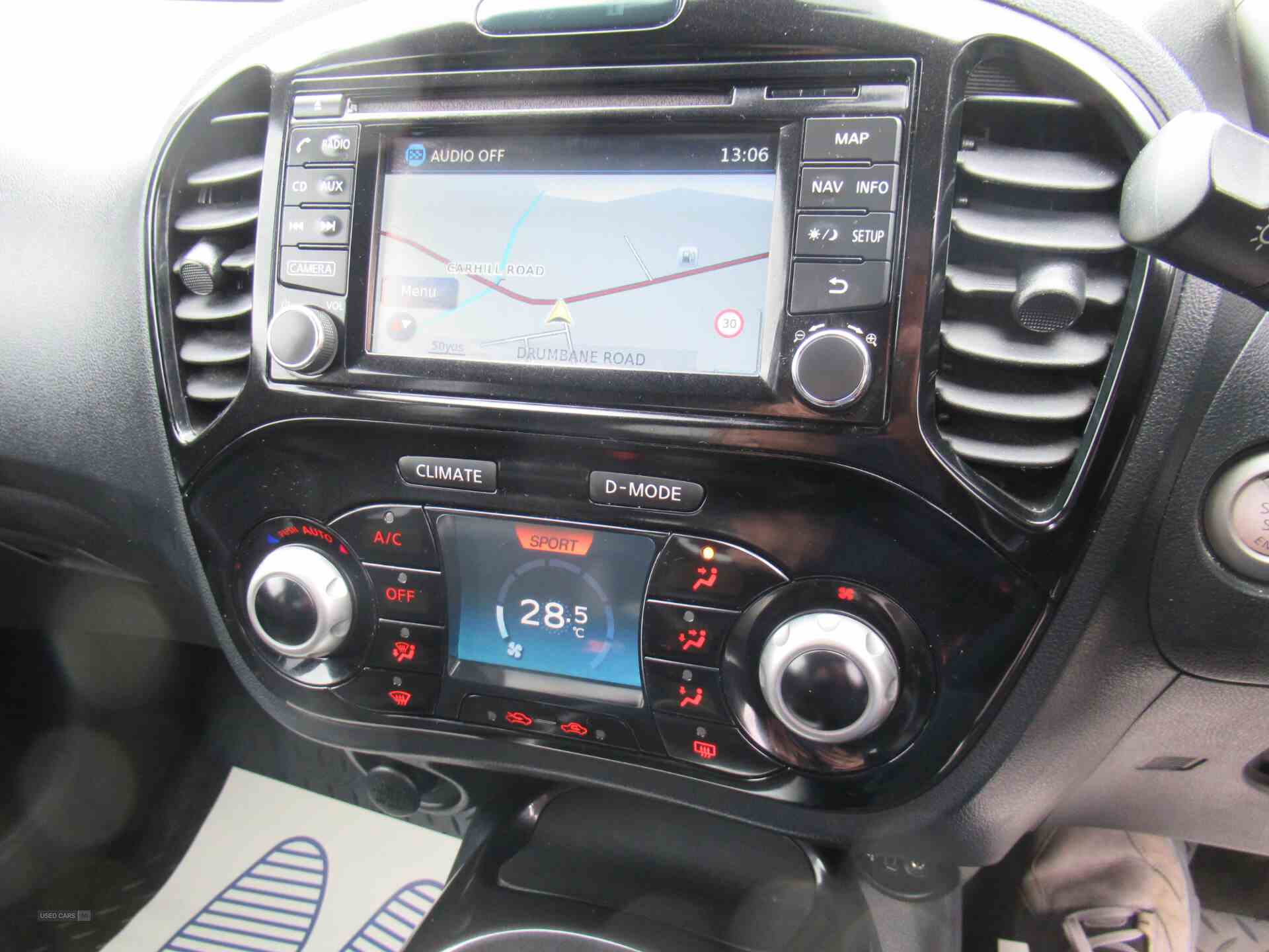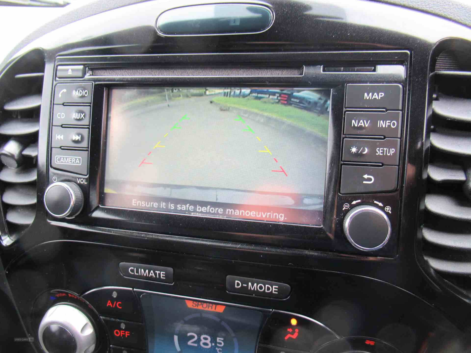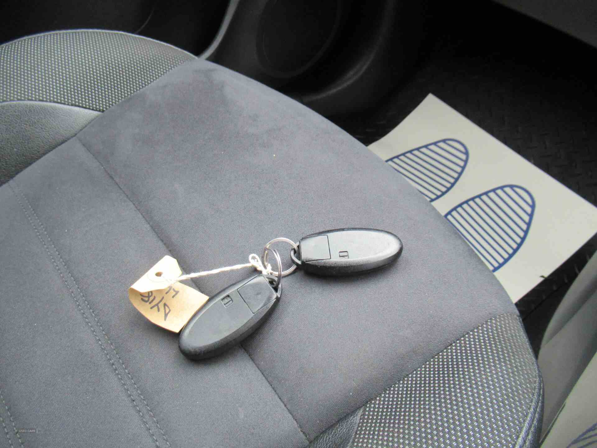 Bluetooth system, Colour rear view camera, Cruise control + speed limiter, Electric speed sensitive power steering, Nissan connect sat nav system, Push button starter, Service interval indicator, Trip computer, 6 speakers, Aux input, DAB Digital radio, Steering wheel mounted audio controls, Stereo radio/CD player and MP3 facility, USB port, 2 speed wipers+variable intermittent wipe, Automatic headlights, Body colour bumpers, Body colour door handles, Electric door mirrors, Electric folding door mirrors, Electric front/rear windows, Front fog lights, Heated door mirrors, LED daytime running lights, Privacy glass, Rain sensor, Rear wiper, Passenger seat back pocket, 12V socket, 60/40 split folding rear seat, Artificial leather/suede upholstery, Climate control, Front armrest, Front cupholders x 2, Front door pockets with bottle holders, Front head restraints, Front seat belt pre-tensioners with load limiters, Gear shift indicator, Glovebox, Height adjustable driver's seat, Internal chrome door handles, Isofix child seat preparation, Leather steering wheel and gear knob, Luggage area under floor storage box, Map reading lamp, Pollen filter, Rear headrests, Rear tonneau cover integrated into tailgate, Sports seats, Steering wheel rake adjustment, ABS + EBD + EBA, Child locks on rear doors, Driver and passenger airbags, Driver and passenger side airbags, ESP + traction control, Front and rear curtain airbags, Height adjustable front seatbelts, Passenger airbag deactivate switch, Three 3 point rear seatbelts, Tyre pressure monitoring system, VDC Dynamic Vehicle Control, Warning triangle and first aid kit, Alarm, Immobiliser, Intelligent Key, Remote central locking, 17" Sport alloy wheels, Tyre repair kit