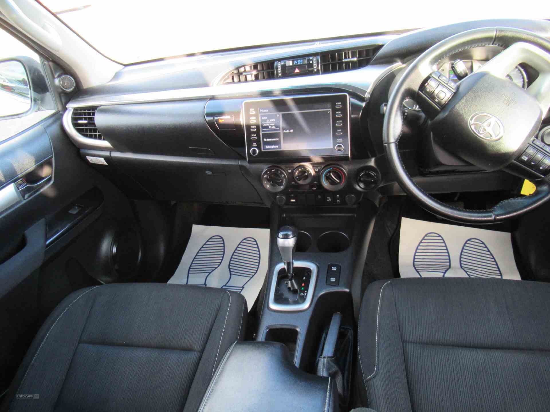 4.2" Multi information display, Bluetooth connectivity, Fuel heater, Intelligent adaptive cruise control, Lane departure warning system, Lights on warning buzzer, PAS, Pre-collision system with pedestrian detection, Rear view camera, Smart phone integration with Android auto & Apple CarPlay, Static guidelines on rear view camera, Tachometer, Touch 2 multimedia system with 8" display, 6 speakers, Digital radio (DAB), USB connector, Auto Headlights, Black side steps, Body coloured front bumper, Chrome door handles, Chrome door mirrors, Chrome rear bumper, Chrome trim on radiator grille, Daytime running lights, Electric front windows with one touch drivers window, Emergency brake light assist (EBS), Follow me home headlights, Green tinted glass, Headlamp levelling, Headlight cut-off reminder, Headlight washers, Heated door mirrors, Heated rear window, LED front fog lights, Mud flaps front and rear, Multi reflector halogen headlights, Power retractable door mirrors, Rear fog lights, Rear window privacy glass, Trailer sway control, Underbody protection cover, Variable front wipers, Windscreen shadeband, Underfloor storage system in load area, 220V power socket, 60/40 split tip-up rear bench seat, Centre console coolbox, Centre console with lid, storage and armrest, Cloth upholstery, Cooler in upper glove box, Driver seat height adjuster, Front passenger underseat storage tray, Inner load hooks on cargo deck, Leather steering wheel and gearshift lever, Locking glovebox, Manual air conditioning, Reach + rake adjustable steering column, Rear seat tip-up function, Tilt adjustable steering wheel, Isofix child seat preparation, Automatic front passenger airbag on/off switch, Child proof rear door locks, Front passenger airbag detector, Front seatbelt pre-tensioners + force limiters, Front seatbelt reminder, Rear seatbelt pre-tensioners with load limiters, Supplement restraint system (SRS) 7 airbags - driver and passenger, knee, side and curtain, Immobiliser, Lockable tailgate, Remote central locking, 2 12v sockets, ABS with EBD, Auto limited slip differntial, Brake assist, Downhill Assist Control (DAC), Hill start assist, Load sensing proportioning system, Rear differential lock with auto disconnect, Road sign assist, Stop/start function, Traction control, Vehicle stability control, All terrain tyres, Full size steel spare wheel