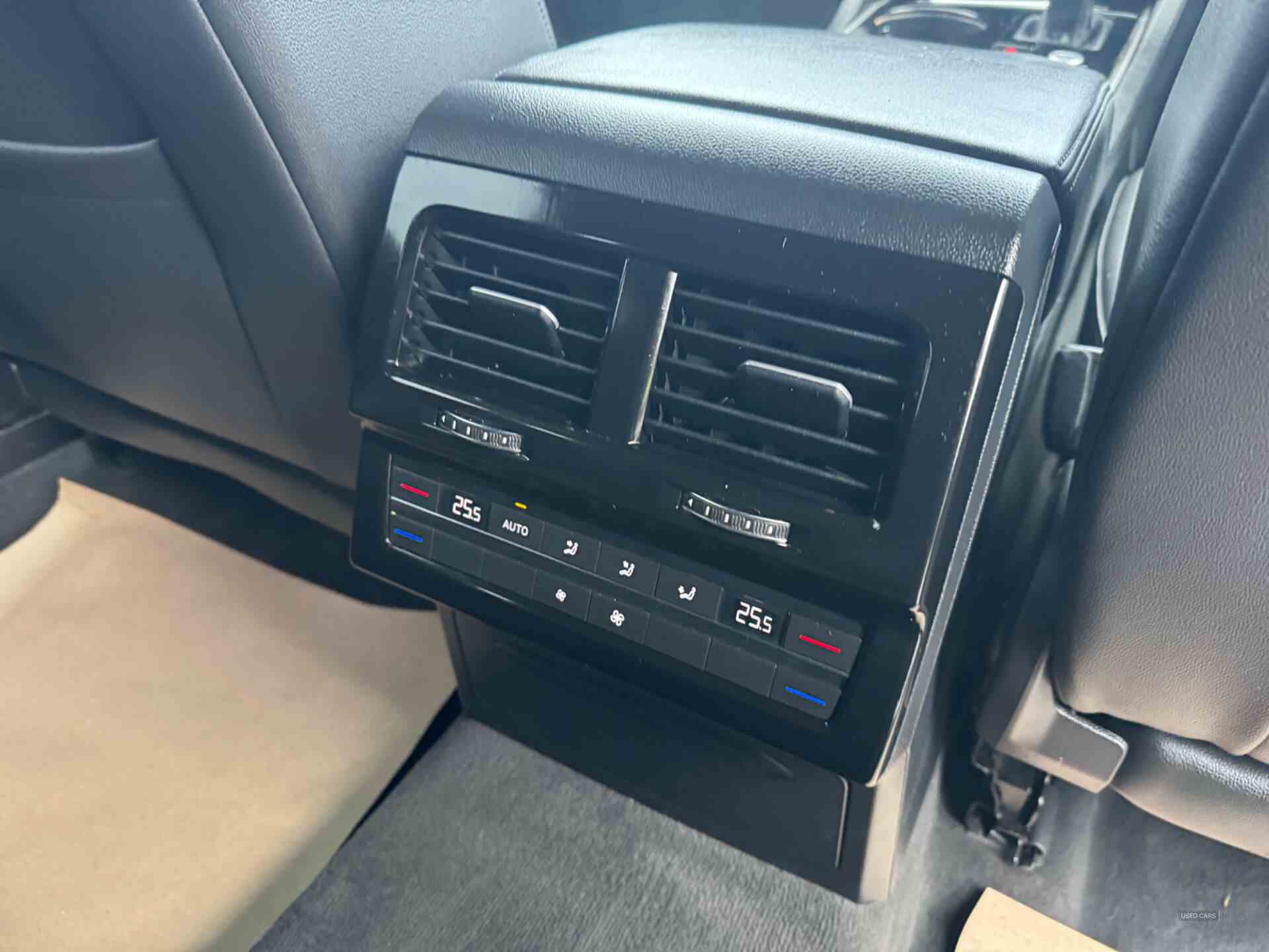 ACC - Adaptive cruise control with front assist, distance monitoring, city emergency brake and speed limiter, Apple car play/Android Auto, Bluetooth hands free telephone connection, Drive select with Damper control, Driver alert system, Dynamic road sign display camera controlled system with visual warning for traffic and road signs, Instrument cluster, MirrorLink, Multifunction camera with lane assist, Multifunction computer, Park assist with rear view camera, Service interval indicator, Speed sensitive power steering, Start/stop system with regenerative braking, Tailgate power latch, Traffic sign recognition, Wireless Smartphone charger, 2 X SD card slot, DAB Digital radio, Gesture control for infotainment system, Auto dimming rear view mirror, Automatic coming/leaving home lighting function, Automatic headlights, Black rear diffuser, Body colour bumpers, Body colour door handles, Body colour door mirrors with integral indicators, Body coloured side skirts, Chrome exhaust tailpipes, Chrome protective strip on door sill, Chrome trimmed radiator grille and air intake, Chrome trimmed side windows, Front and rear electric windows, Headlight range control, Heated windscreen washer jets, LED cornering headlights, LED daytime running lights, LED Indicators, Puddle lights, Rear fog lights, Rear wiper, 12V socket in centre console, 3 rear head restraints, 4 load lashing points, 4 zone climate control, 60/40 split folding slide/recline rear seat, Driver/front passenger seat height adjustment, Electric luggage compartment cover, Folding rear centre armrest with 2 cupholders, Front + rear carpet mats, Front centre armrest with storage box, Front seats lumbar support, Gear shift indicator, Height/reach adjust steering wheel, Isofix preparation for 2 rear child seats, Jack and tool kit, Leather heated multifunction steering wheel with paddle shift, Leatherette door trim, Load through provision, Soul black headlining, Stainless steel load sill protection, Stainless steel pedals, Sunvisors with illuminated vanity mirrors, 3 point front seatbelts with pre-tensioners, ABS, Active bonnet, Automatic post collision braking system, Curtain airbags, Driver/Front Passenger airbags, Driver/Passenger whiplash optimised head restraints, EBD + Brake Assist, EDL, Electronic parking brake with auto hold, ESC with ASR, Front seat side impact airbags, Hill descent control, Passenger airbag deactivate switch, Seatbelt warning lamp and buzzer, Three 3 point rear seatbelts, Two tone horn, Warning triangle and first aid kit, Alarm with interior monitoring in cab, backup horn and towing protection, Anti-theft wheel bolts, Remote central locking, Torsen limited slip differential, Aluminium dash and door panel inserts, High gloss black centre console, Temporary space saver steel spare wheel