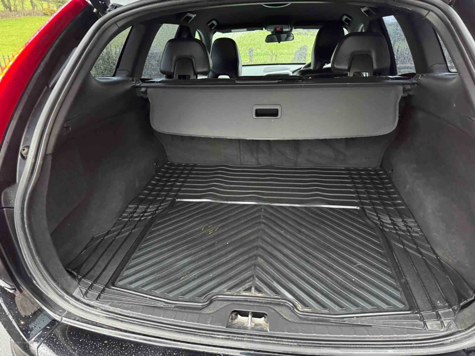 Active TFT Crystal Display, Bluetooth hands free telephone kit, Information centre, Intelligent driver information system (IDIS), PCC personal car communicator W/heat sensor and keyless drive, Sensus navigation system, Service interval indicator, Auxiliary input socket, DAB Digital radio, Steering wheel mounted remote controls, Adaptive brake lights, Body colour bumpers, Chrome side window trim, Electric front+rear windows, Electrically adjustable and heated door mirrors, Front skid plate, Headlamp levelling, Home safe and approach lighting, LED daytime running lights, Matt silver finish door mirrors, Rain sensor windscreen wipers, Rear diffuser, Rear spoiler, Rear wiper, Side marker illumination, Tinted windscreen, Twin exhaust pipes, Lumbar support, 12V socket in front + rear tunnel console, 3 spoke leather steering wheel, 4 aluminium high level anchor points, A-pillar parking ticket holder, Air quality control system, Aluminium sports pedals, B Pillar ventilation, Charcoal headlining, Electronic climate control (ECC), Footwell lights, Front centre armrest with storage compartment and cupholders, Front sports seats, Front/rear reading lights, Head restraints for all seats, Height adjustable drivers seat with lumbar support, Height/reach adjustable steering column, Illuminated driver/passenger vanity mirrors, Isofix attachments on rear seats, Load cover, Lockable load floor, Sports floor mats, Versatile split folding rear seat - 40/20/40, WHIPS - Whiplash Protection System, Front 3 point seatbelts, 5 three point seatbelts, ABS/EBD, City safety, DSTC-Dynamic Stability and Traction Control, Dual stage Driver/Passenger Airbags, EBA, Electronic parking brake, HBA (Hydraulic Brake Assist), Hill start assist, Inflatable curtain, Passenger airbag deactivate switch, Roll over protection, RSC - Roll stability control, Seatbelt pre-tensioners, SIPS airbags, Tyre pressure monitor, Warning triangle, Anti-theft alarm including immobiliser/volume sensor + level sensor, Fuel flap with deadlocking system, Key integrated remote control central locking, Locking wheel nuts, Diesel particulate filter, Sports chassis, Aluminium trim