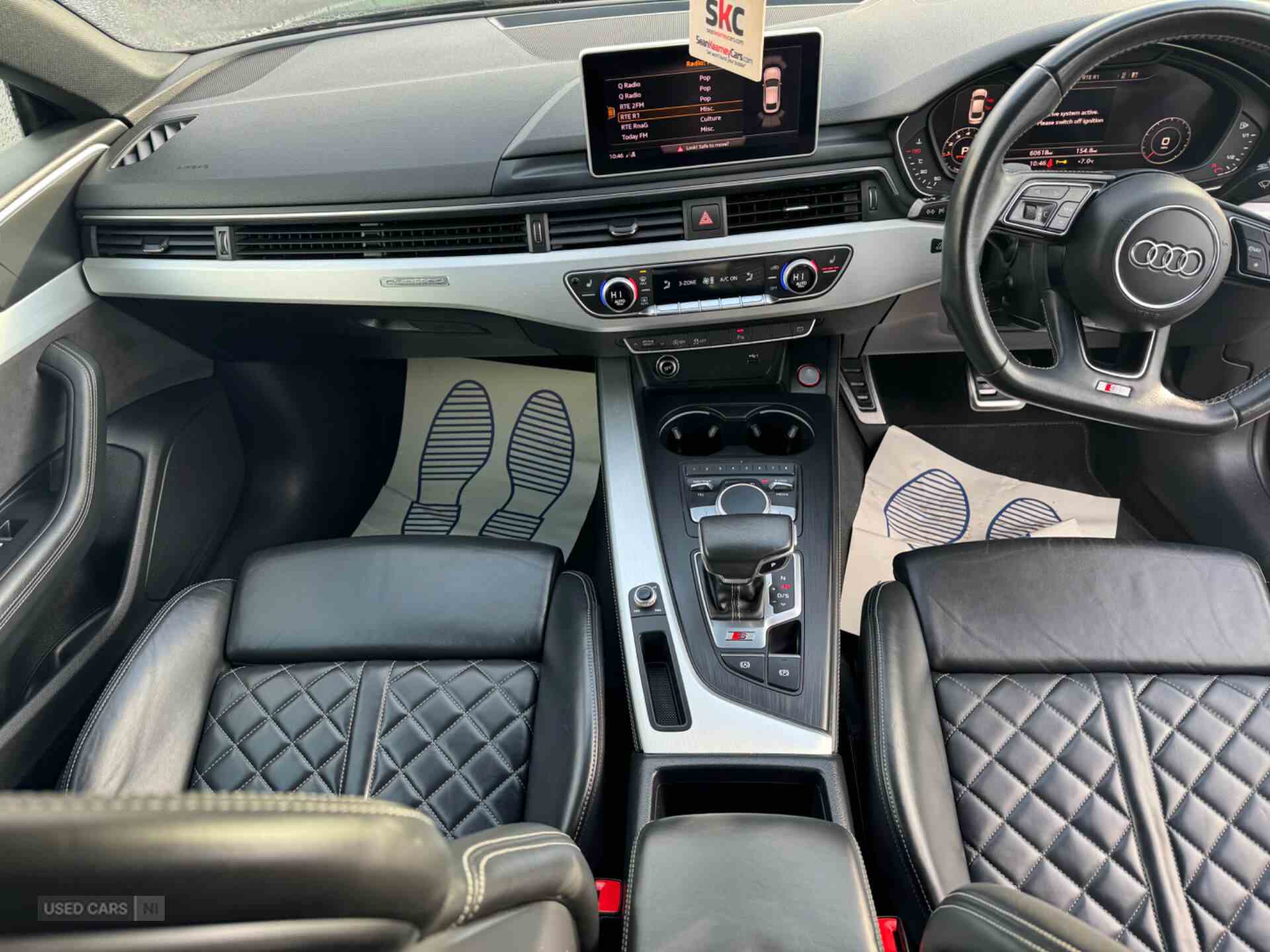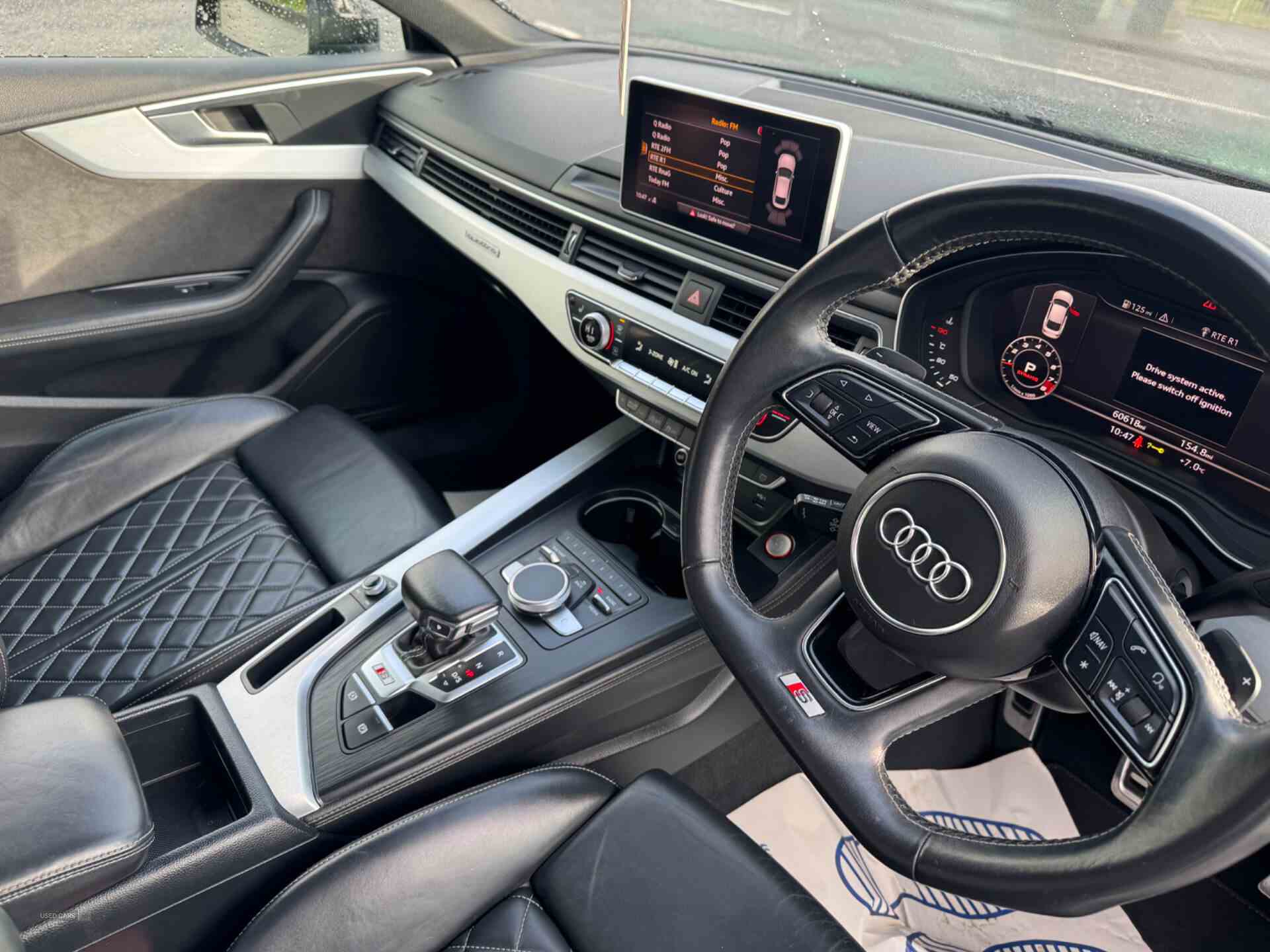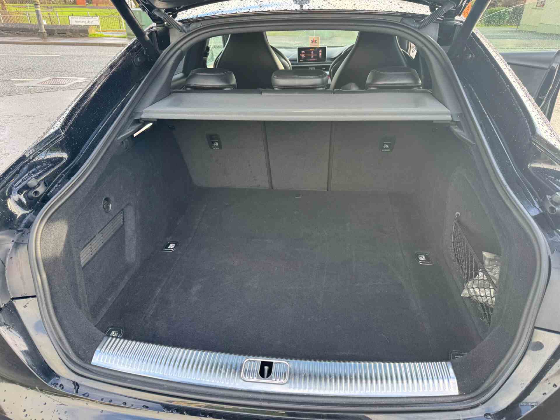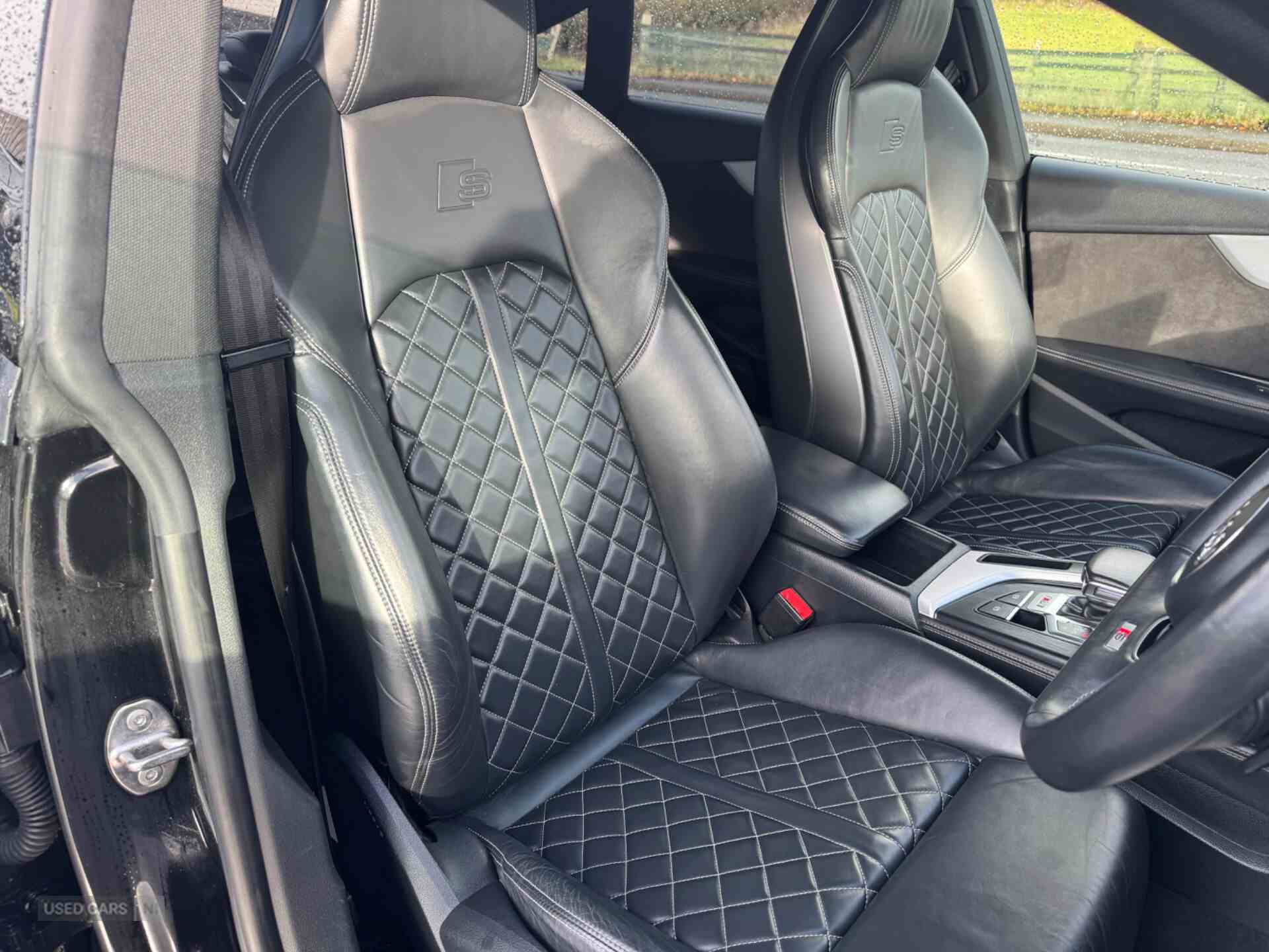 Audi drive select, Audi parking system plus with front and rear sensors, Audi smartphone interface, Colour driver's information system display, Electric tailgate release, Electro-mechanical PAS, MMI navigation plus with MMI touch, Mobile telephone preparation - bluetooth interface, Service interval indicator, Voice control system, CD player, DAB Digital radio, MMI radio plus with 7" colour MMI screen and MMI controller, Two SDXC card slots, Air inlets in titanium black, Aluminium door mirror housings, Auto dimming rear view mirror with acoustic windscreen, Body colour bumpers, Body colour rear spoiler, Chrome door handles, Electric adjustable heated door mirrors, Electric front windows, Front fog lights, Headlight washers, Heat insulated glass, High beam assistant, Rain and light sensors, S body styling, Twilight grey matt radiator grille in aluminium silver matt inlay, Twilight grey matt rear diffuser, Twin chrome exhaust tailpipes x2, 'S' instrument dials, 2 x USB charging port with aux input socket, 3 seat rear bench, Adjustable steering column, Automatic tri-zone climate control, Black headlining, Centre console with cupholders, Electric lumbar support, Fine Nappa leather upholstery, Front centre armrest, Front head restraints, Front/rear floor mats, Illuminated door sills, Isofix front passenger and rear seat preparation, Jack and tool kit, Massage function for front seats, Rear headrests, Split folding rear seat, Stainless steel pedals and foot rest, Super sports seats, Top tether anchor plate for isofix child seat, Extended interior upholstery pack - A5/RS5, Non Smokers pack, 3x3 point rear seatbelts, ABS, ASR, Driver/Front Passenger airbags, Electromechanical parking brake, Enhanced braking system, ESP + traction control, First aid kit, Front and rear curtain airbags, Front passenger airbag deactivation, Front side airbags, Height adjustable front seatbelts, Hill hold function, Multi-Collision braking, Pre-sense city emergency braking system, Seatbelt warning, Tyre pressure monitor, Warning triangle, Anti theft system, Immobiliser, Keyless Start, Locking wheel bolts, Remote central locking, Thatcham category 1 alarm, 19" 5 spoke cavo design alloy wheels in part polished/contrast grey finish, Space saver spare wheel