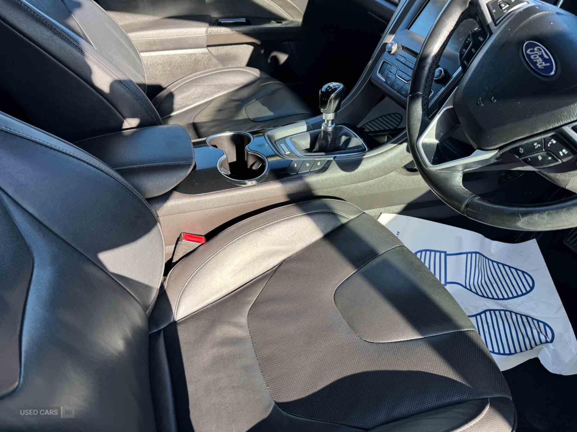 'Ford Power' starter button, Bluetooth connectivity with voice control, Easy fuel capless refuelling system, Ford SYNC 3 with 8" colour touch screen, Front and rear parking sensors, Lane keep assist, PAS, SYNC Emergency Assistance, TFT cluster screen, Traffic sign recognition, Trip computer, Radio/CD, USB socket, 'Quickclear' heated windscreen/heated washer jets, Auto dimming interior mirror, Auto high beam, Automatic headlights, Automatic rain sensing wipers, Body colour rocker mouldings, Body coloured bumpers, Chrome window surround, Electric adjustable door mirrors, Electric folding door mirrors, Electric front windows, Electric rear windows with global closing, Front fog lights with chrome surrounds, LED daytime running lights, LED tail lights, Rear wiper, Twin chrome exhaust tailpipes, Centre console with armrest, Driver's lumbar support, Dual zone automatic climate control, Folding rear seats, Front headrests, Height adjustable passenger seat with lumbar support, Isofix on 2nd row rear seats, Leather steering wheel, Rear armrest, Rear headrests, Ski hatch, Sports seats, Vector Cloth Upholstery, ABS+EBA, Curtain airbags, Driver/front passenger airbag, Drivers knee airbag, Electronic parking brake, ESP + traction control, Hill start assist, Intelligent Protection System (IPS), Tyre pressure monitoring system, Keyless entry and start, Remote central double locking, Thatcham Cat.1 alarm, Diesel particulate filter