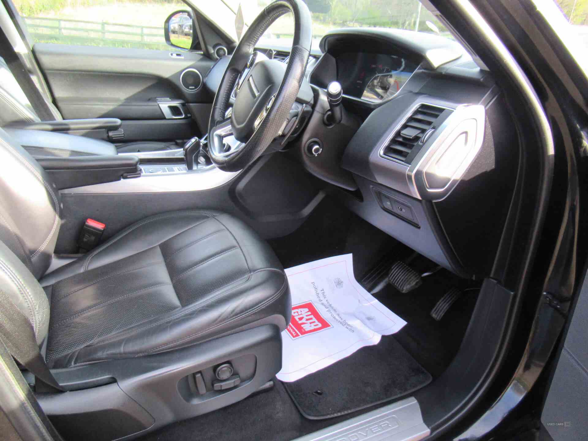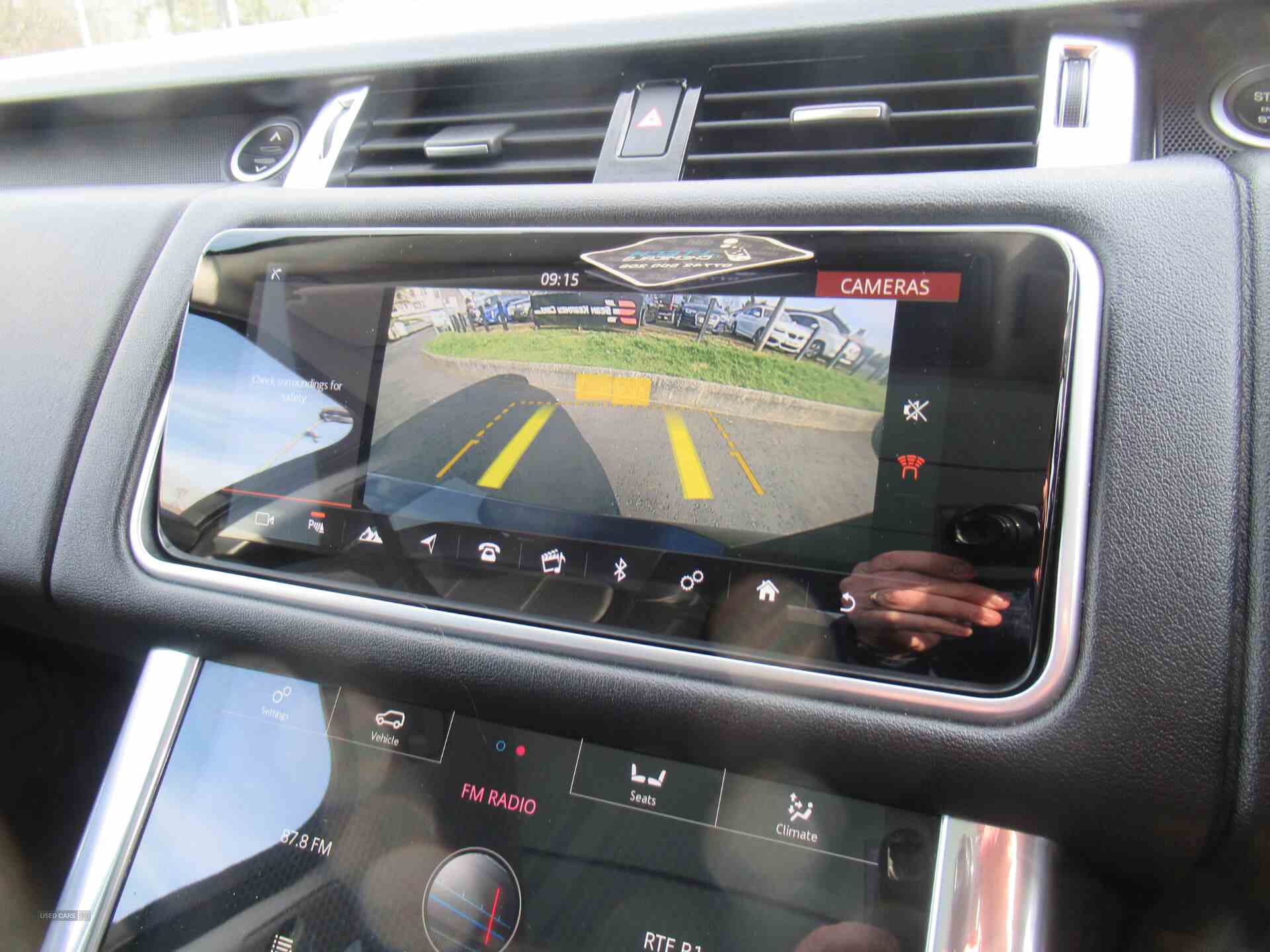 Bluetooth telephone connection, Front parking aid with visual display, Gesture tailgate, InControl secure, Mist sensor, Navigation pro system with 10" touch screen, app interface and media storage, Push button starter, Rear park distance control, Speed sensitive power steering, TFT Virtual Instrument Panel, Trip computer, Bluetooth audio streaming, DAB Digital radio, InControl protect, USB/aux input socket, Adaptive brake lights, Auto dimming rear view mirror, Body coloured bumpers, Body coloured door mirrors, Daytime running lights, Door/quarter lights in toughened plate glass, Electric front/rear windows/one touch operation, Electric heated, adjustable, folding door mirrors with memory + approach lamp, Follow me home headlights, Front fog lights, Heated rear window, Heated washer jets, Heated windscreen, Laminated front side windows, Laminated windscreen, LED rear lamps, Rain sensor windscreen wipers, Rear wash/wipe, Remote window closing, Trailer stability assist, 2 way active front head restraints, 2 way rear head restraints, Auto air recirculation, Centre armrest with cubby box, Climate control memory, Driver's footrest, Front and rear cupholders, Front door storage bin, Front map lights, Front seat back map pockets, Front stowage pocket, Front/rear passenger grab handles, Glovebox, Isofix child seat preparation, Leather steering wheel, Luggage compartment lighting, Multifunction steering wheel, Pollen filter, Reach/rake electric adjustable steering column + entry/exit tilt away, Rear centre armrest, Roller blind loadspace cover, Three 12V accessory power outlets, InControl connect Pack - Range Rover Sport, 3 point seatbelts on all seats, ABS + EBD + EBA, Auto lock system when vehicle in motion, Auto locking differential, CBC - (Cornering brake control), Curtain airbags, DSC - Dynamic Stability Control, Dual stage Driver/Passenger Airbags, Electric child locks, Electronic parking brake, Electronic traction control, Front seatbelt pretensioners, Front side airbags, Height adjustable front seatbelts, Hill descent control, Low traction launch, Roll stability control, Seatbelt warning, Tyre pressure monitoring system, Immobiliser, Keyless entry, Locking wheel nuts, Perimetric and volumetric anti theft alarm, Remote locking, Adaptive dynamics