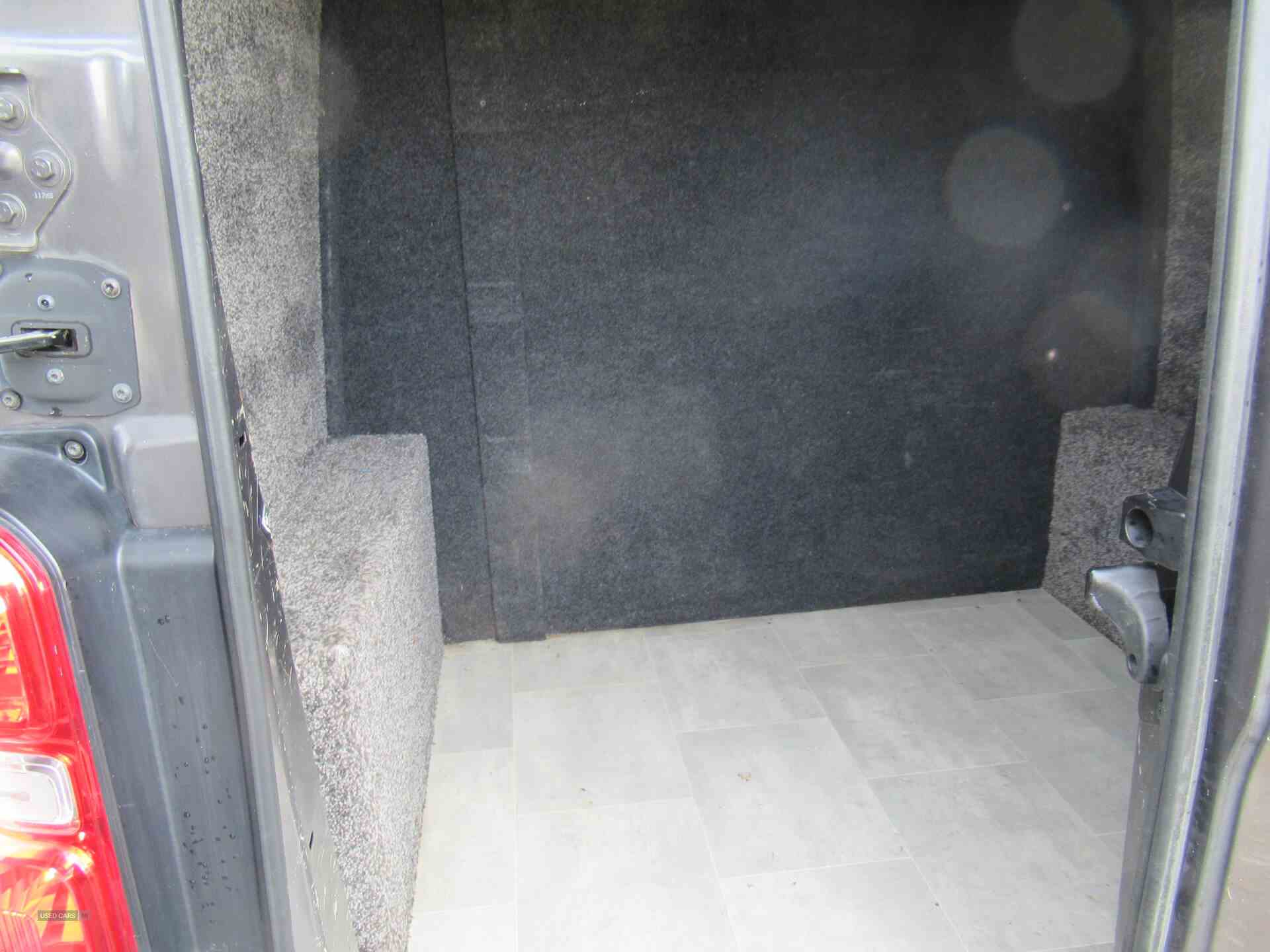 Bluetooth connectivity, PAS, Tyre pressure monitor, 2 tweeters + 2 woofers, Digital radio (DAB), USB connection, 180 degree opening rear doors, Body colour bumpers, Body colour side protection mouldings, Body coloured door handles, Cornering Lights, Daytime running lights, Electric heated door mirrors, Electric windows, Fog lamps, Interior rear view mirror, Laminated acoustic windscreen, Safety autoreverse for electric windows, Tinted glass, Tinted rear light/side indicator lights, Twin rear doors, Twin sliding side doors, Front/rear cupholders, 2 Reading lights, 2 seat front passenger bench, Air conditioned glove box, Cloth upholstery, Dashboard storage areas, Front armrest, Glazed bulkhead, Height adjustable drivers seat, Illuminated glovebox, Manual air conditioning, Smart cargo, Underseat storage compartment, Driver and passenger airbag, Deadlocks, Remote central locking, Sports suspension system, 12v socket in glovebox, 12v socket in luggage compartment, 3 x 12V power outlets, ABS, ESC + Hill start assist, Vehicle stability control, 16" steel wheels, Full size spare wheel, Full wheel covers