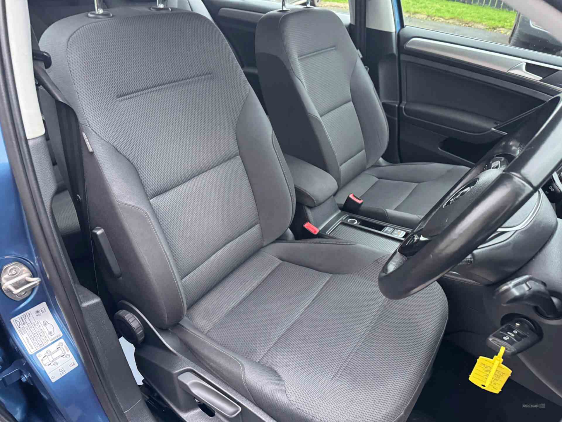'Lights On' warning buzzer, ACC - Adaptive cruise control with front assist, distance monitoring, city emergency brake and speed limiter, Bluetooth Telephone preparation, Brake pad wear indicator warning light, Driver alert system, Driver profile selection, Exterior temperature gauge, Flat tyre indicator, Instrument cluster in white, Multifunction computer, PAS - speed related, Rev counter, TFT display screen, Trip and service interval display, Ultrasonic front and rear optical and audible parking sensors, Warning buzzer and light for front seatbelts unfastened, CD/MP3/WMA, USB and SD card reader, aux-in, Composition media system, DAB Digital radio, MDI with USB/iPod connection cables, Auto dimming rear view mirror, Automatic coming/leaving home lighting function, Automatic headlights, Black front air intake and radiator grilles, Body colour bumpers, Body colour door handles, Body colour door mirrors with integral indicators, Cornering front fog lights, Electric folding door mirrors with puddle lamps, Electric front windows, Electric rear windows, Electrically adjustable and heated door mirrors, Heated rear windscreen, Rain sensor, Range adjustable headlights, Rear diffuser, Rear roof spoiler, Rear windscreen washer and wiper with interval delay, Reverse activated kerb-view adjustment on passenger's door mirror, Windscreen wipers/ intermittent wipe + 4 position delay, 12V socket in luggage compartment, 3 rear headrests, 3 spoke steering wheel, 60/40 split folding rear seat, Bag hook in luggage compartment, Boot lashing points, Courtesy light delay, Cover for storage compartment in centre, Driver/front passenger seat height adjustment, Dust/pollen filter, Front centre armrest with storage box and rear air vents, Front reading lights, Front seat back storage pockets, Grab handles, Height/reach adjust steering wheel, Illuminated vanity mirrors, Isofix preparation for 2 rear child seats, Load through provision, Lockable, illuminated, cooled glovebox, Luggage compartment cover, Luggage compartment lighting, Multifunction leather steering wheel with leather gear knob/handbrake grip, Rear centre armrest with 2 cupholders, Rear cupholder, Rear reading lights, Storage box in luggage compartment, Storage compartments in doors, Variable boot floor, height adjustable and removable, White adjustable panel illumination, Winter pack - Golf, 3 point height adj front seatbelts + pretensioners, 3 rear 3 point seatbelts, ABS, Automatic post collision braking, Child locks on rear doors, Door open warning reflectors, Driver/Front Passenger airbags, Driver/Passenger whiplash optimised head restraints, Drivers knee airbag, Electronic parking brake with auto hold, Electronic tyre pressure monitoring, ESP with EDL + ASR, Front and rear curtain airbags, Front passenger airbag deactivation, Front side airbags, Fuel cut off safety device, HBA (Hydraulic Brake Assist), Pre crash system, Warning triangle and first aid kit holder, Alarm with interior protection, Electronic engine immobiliser, Remote central locking with 2 remote folding keys, Diesel particulate filter, XDS electronic differential lock, Brushed stainless steel decorative inserts in dash, Chrome air vent surrounds, Chrome-plated light switch surround, Steel space saver spare wheel